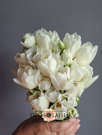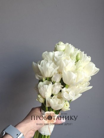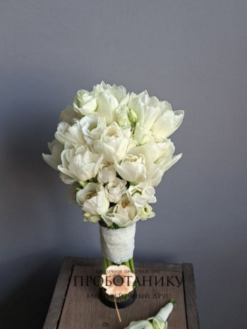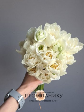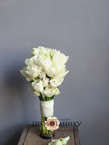 Букет невесты с белыми тюльпанами от флористов цветочного пространства "ПРОБОТАНИКУ".