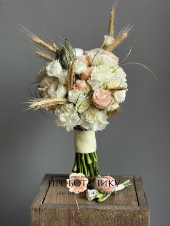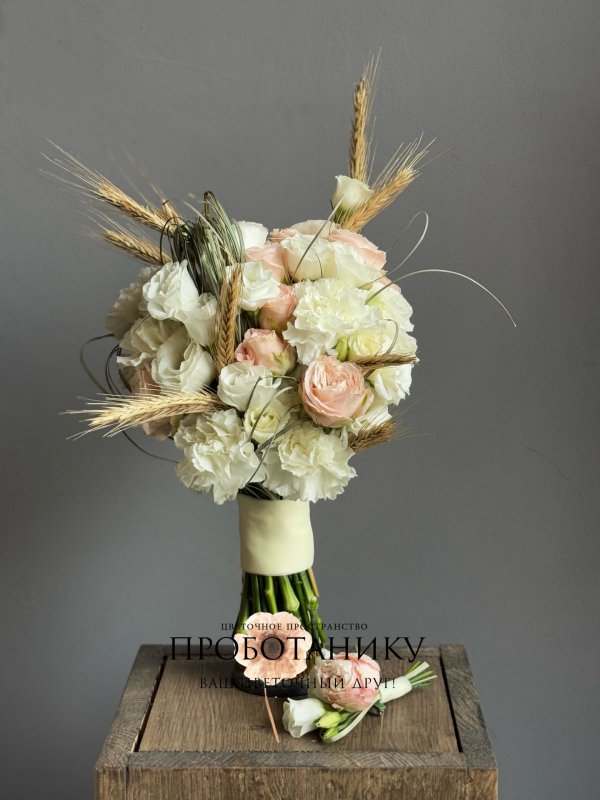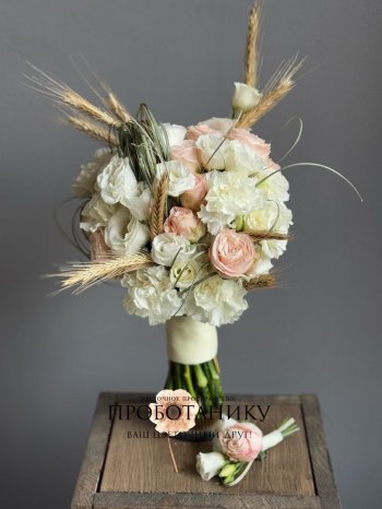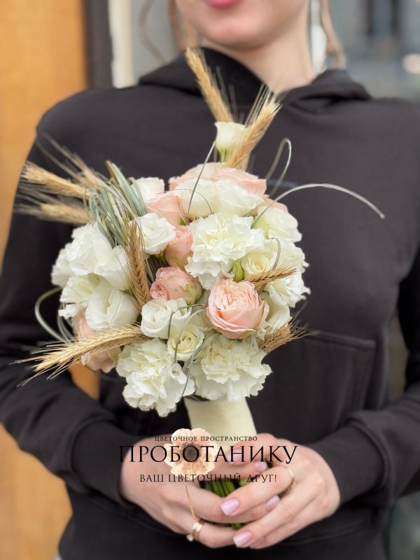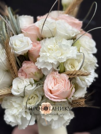 Букет невесты с колосьями пшеницы от флористов цветочного пространства "ПРОБОТАНИКУ".