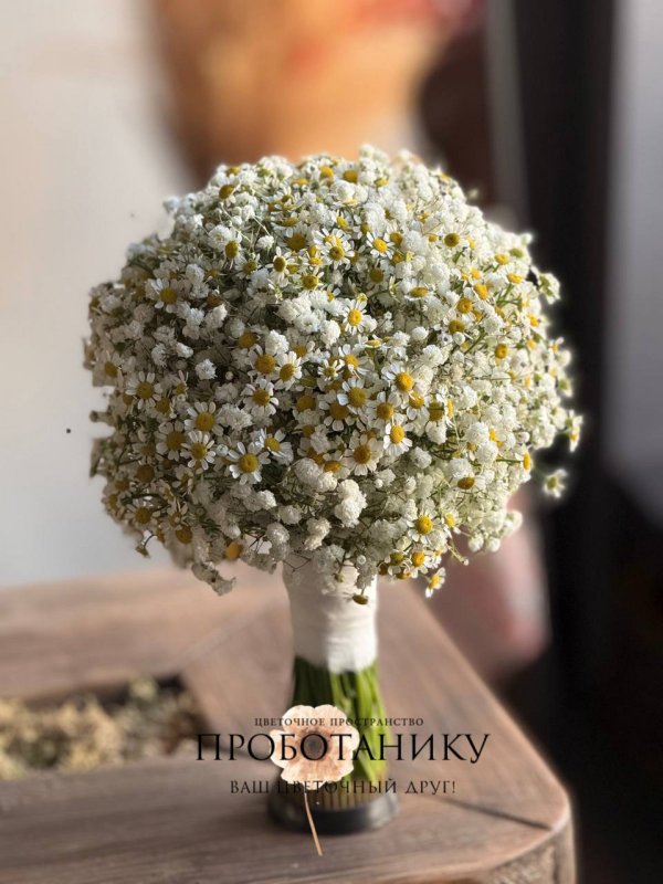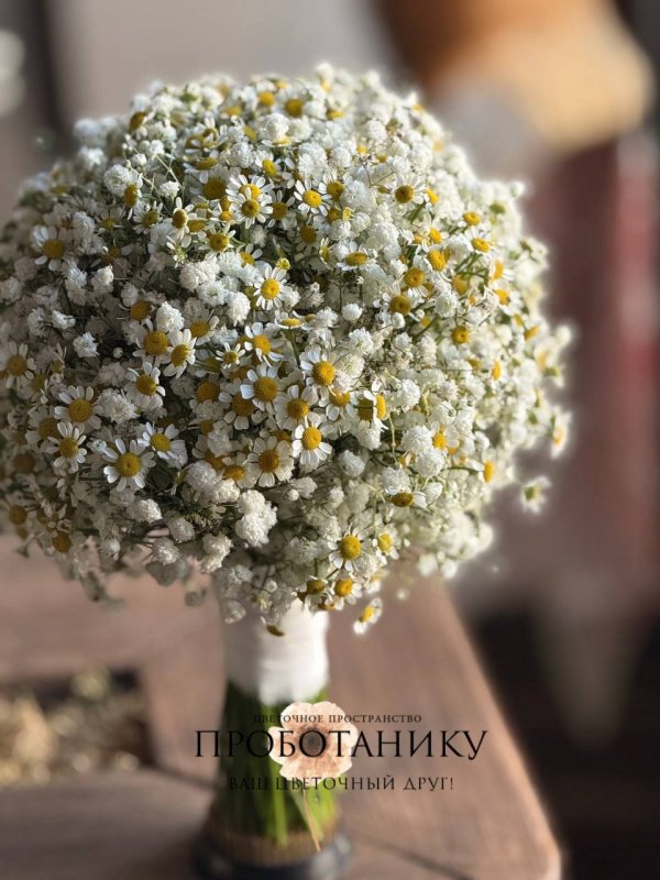 Букет невесты с ромашками и гипсофилой от флористов цветочного пространства "ПРОБОТАНИКУ".