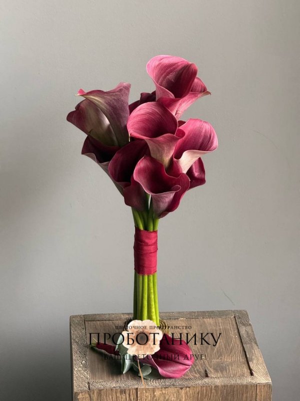 Букет невесты с винными каллами от флористов цветочного пространства "ПРОБОТАНИКУ".