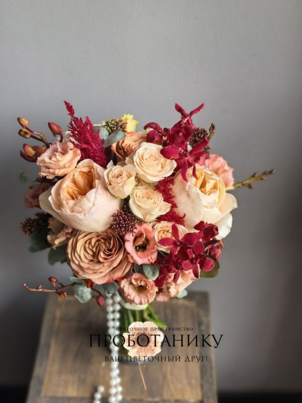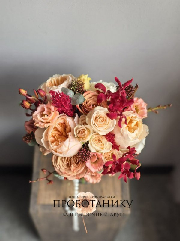 Букет невесты с яркими оттенками от флористов цветочного пространства "ПРОБОТАНИКУ".