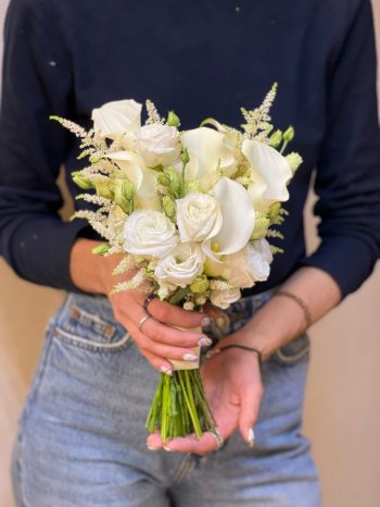 Свадебный букет с каллами и астильбой от цветочном пространстве ПРОботанику.