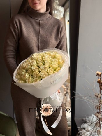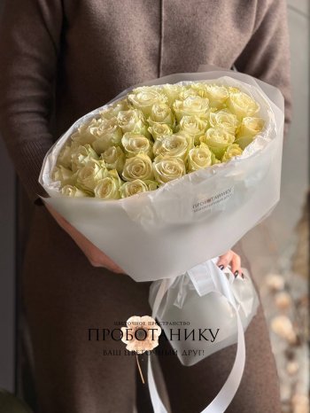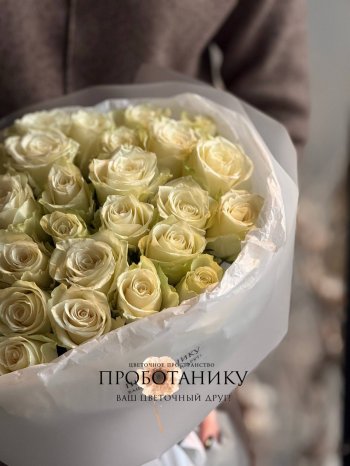Букет из 33 белых роз от флористов цветочного пространства "ПРОБОТАНИКУ".