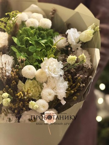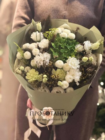 Букет с бело-зеленым миксом от флористов цветочного пространства "ПРОБОТАНИКУ".
