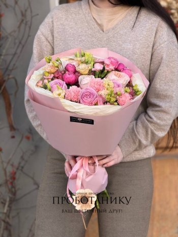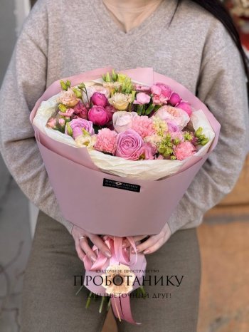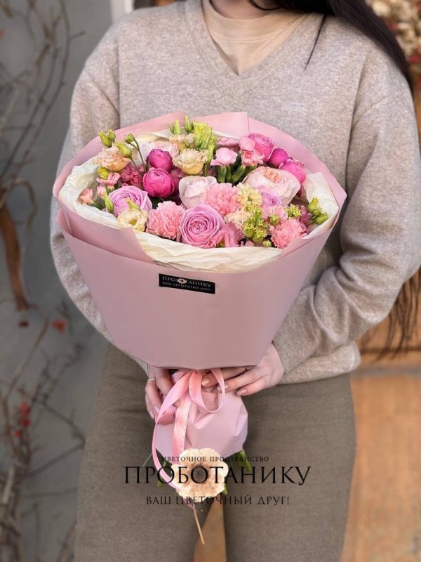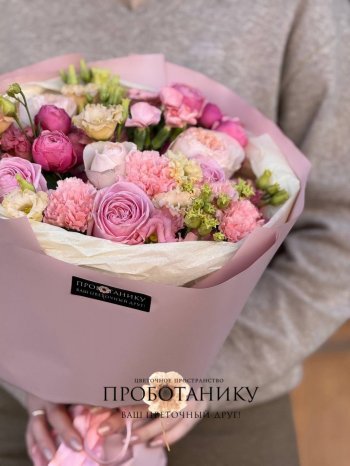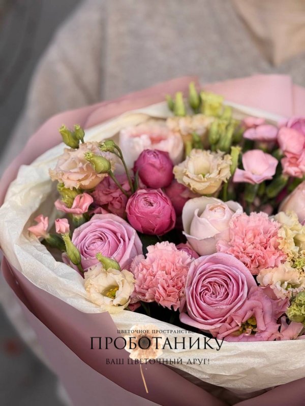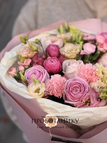 Букет с миксом розовых роз от флористов цветочного пространства "ПРОБОТАНИКУ".
