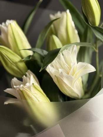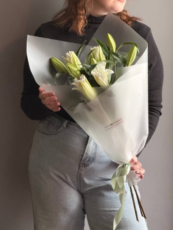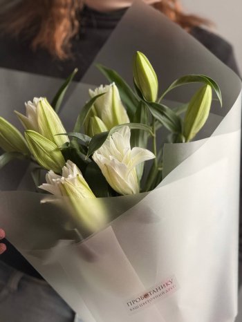 Букет с пионовидными лилиями от флористов цветочного пространства "ПРОБОТАНИКУ".