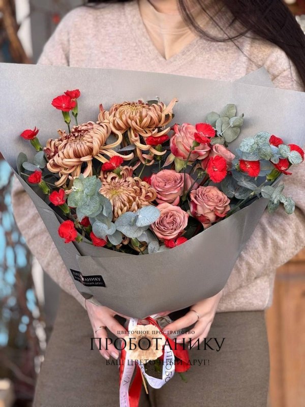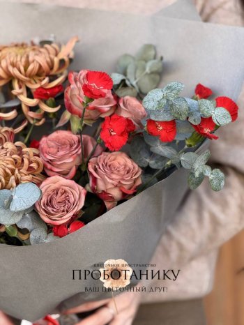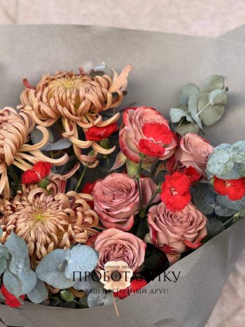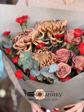 Букет с премиум хризантемой от флористов цветочного пространства "ПРОБОТАНИКУ".