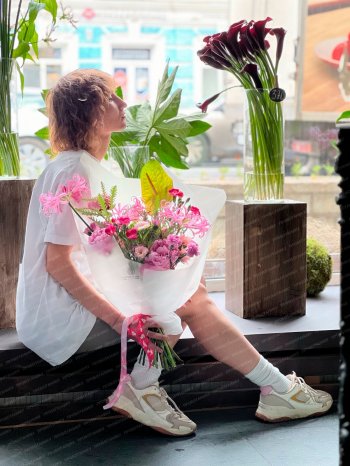 Букет с розовыми цветами от флористов цветочном пространстве ПРОботанику.
