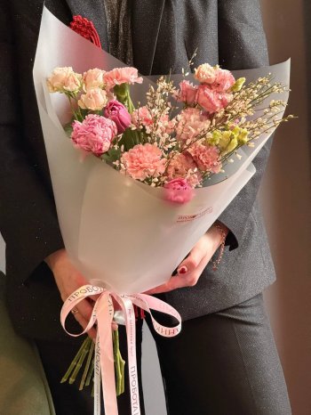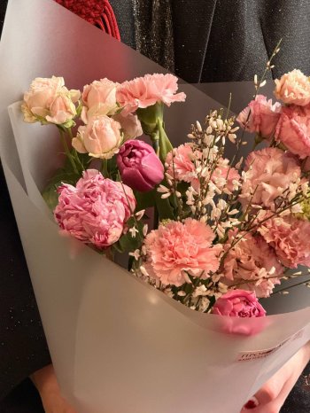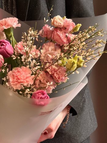 Букет с тюльпанами и эустомой от флористов цветочного пространства "ПРОБОТАНИКУ".