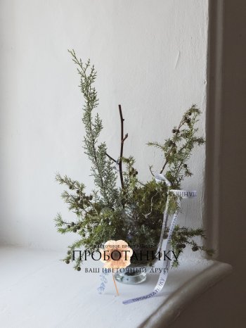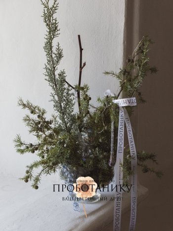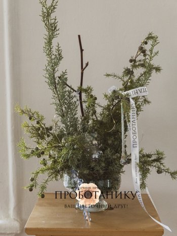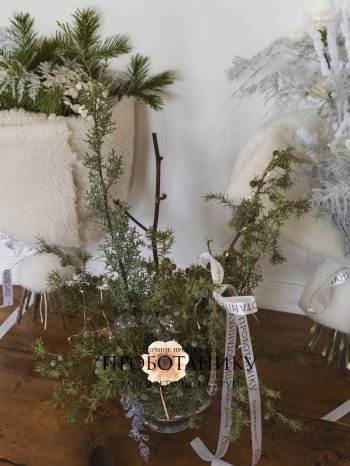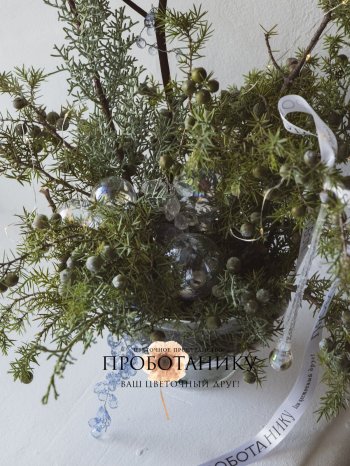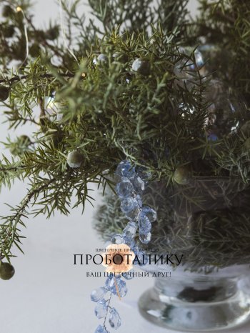 Композиция "Ледяной дождь" от флористов цветочного пространства "ПРОБОТАНИКУ" из коллекции "А снег идет...".