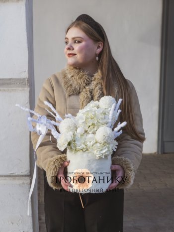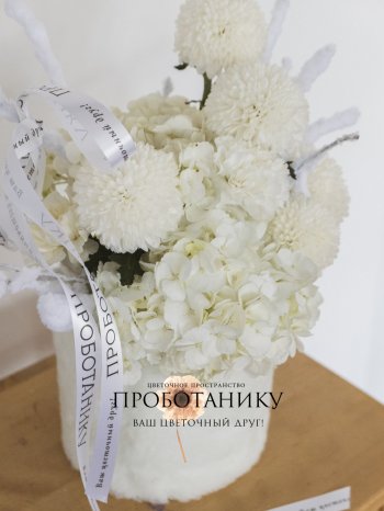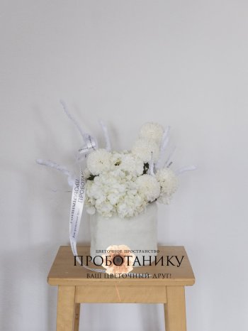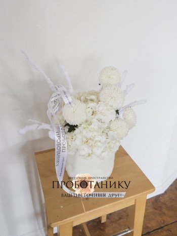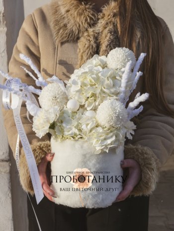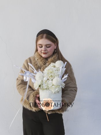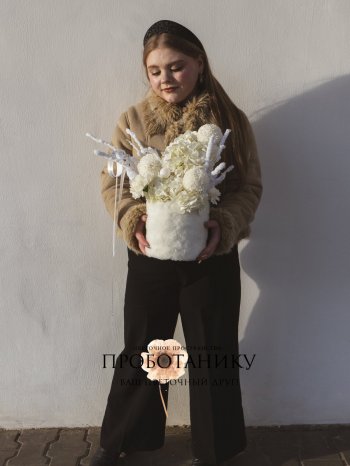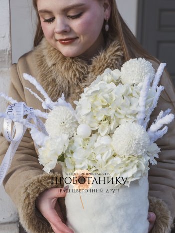 Композиция "Сугроб" от флористов цветочного пространства "ПРОБОТАНИКУ" из коллекции "А снег идет...".