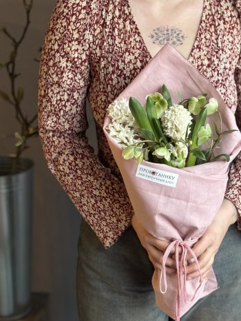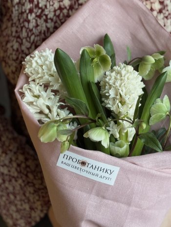 Сверток гиацинты и хелеборусом в льняной ткани. Первые весенние свертки нашей новой коллекции «Да, это мне!» уже доступны к заказу!