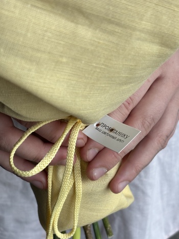 Сверток с нарциссами в льняной ткани.