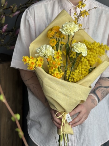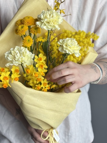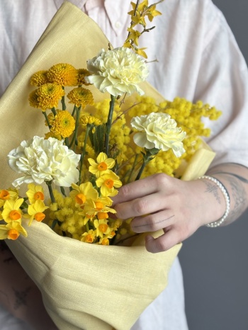 Состав букета Хризантемы, Диантусы, Нарциссы, Другие
