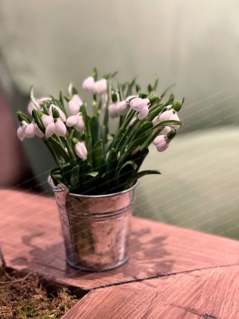 Ведерко белых подснежников от флористов цветочного пространства "ПРОБОТАНИКУ".