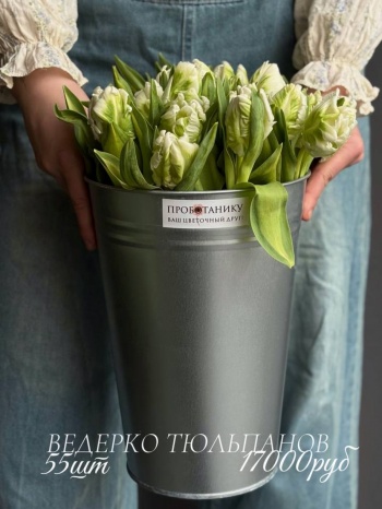 Ведерко зеленых пионовидных тюльпанов