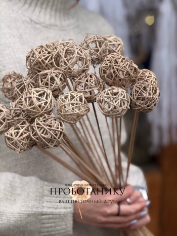 Декор шар плетеный, натуральный в цветочном пространстве "ПРОБОТАНИКУ".