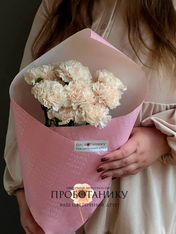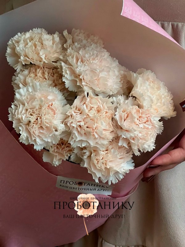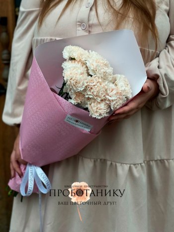 Бело-кремовый букет с диантусами от флористов цветочного пространства "ПРОБОТАНИКУ".