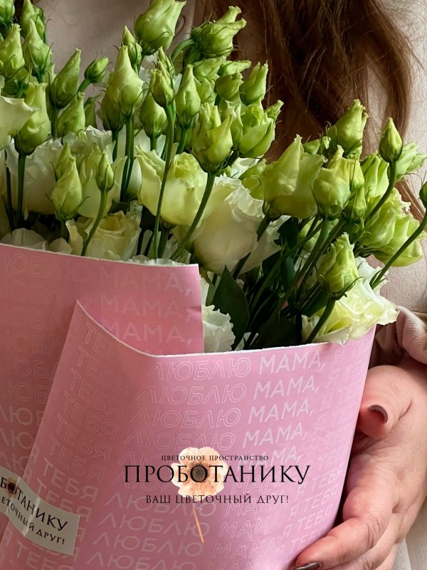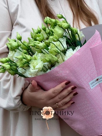 Бело-кремовый букет с эустомой от флористов цветочного пространства "ПРОБОТАНИКУ".