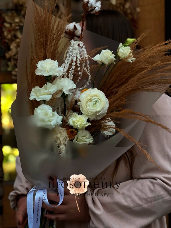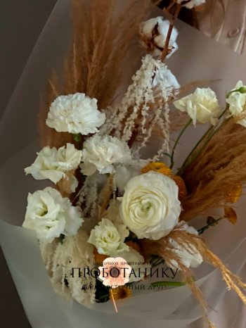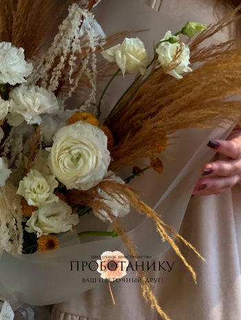 Бело-кремовый букет с кортадерией от флористов цветочного пространства "ПРОБОТАНИКУ".