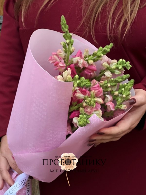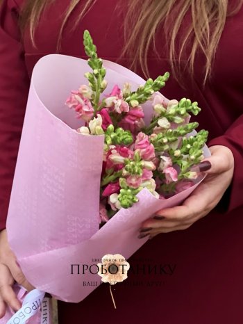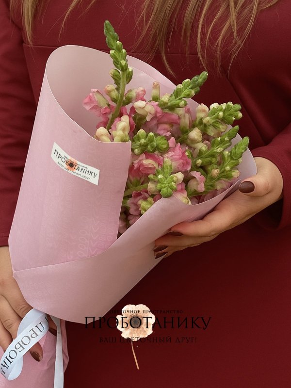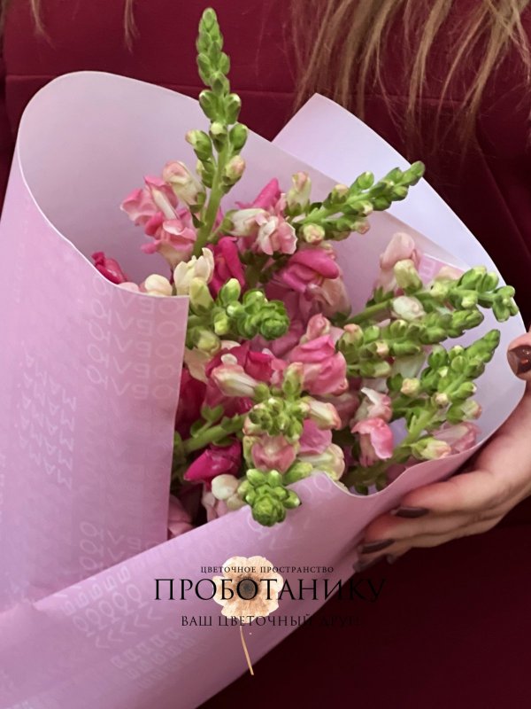 Бордовый букет с антирринумом от флористов цветочного пространства "ПРОБОТАНИКУ".
