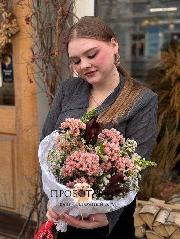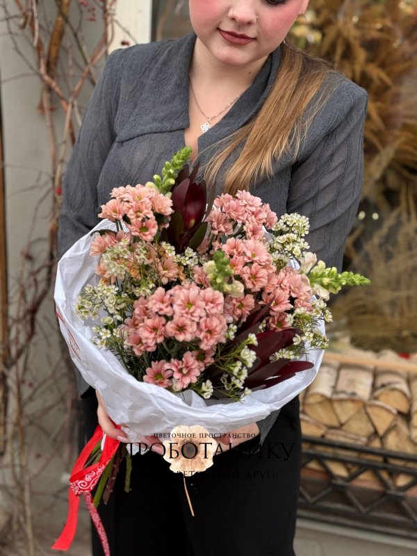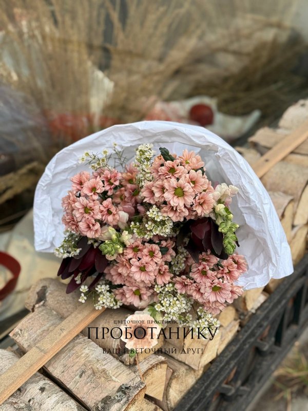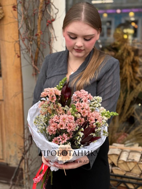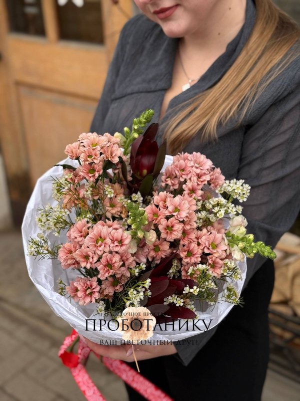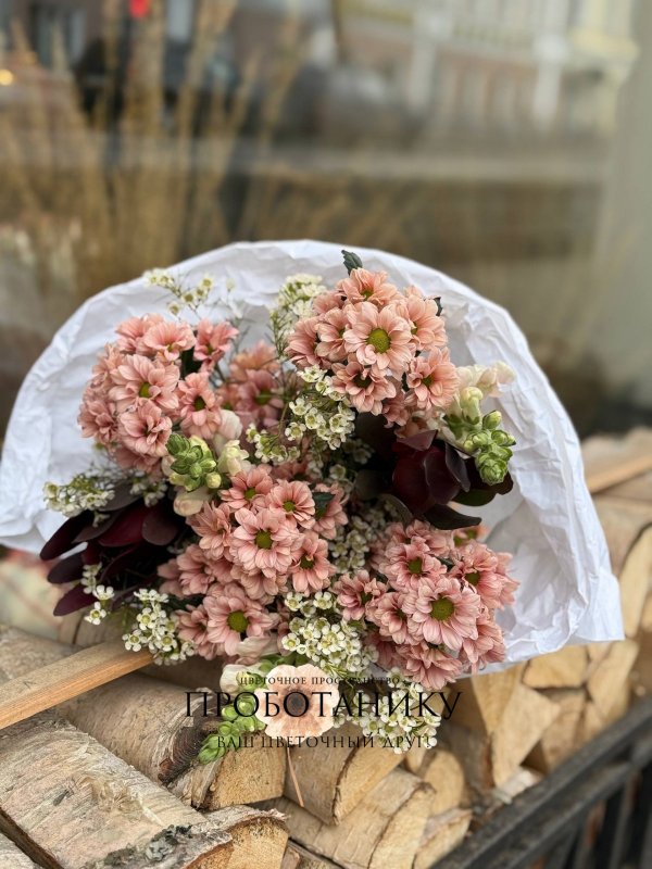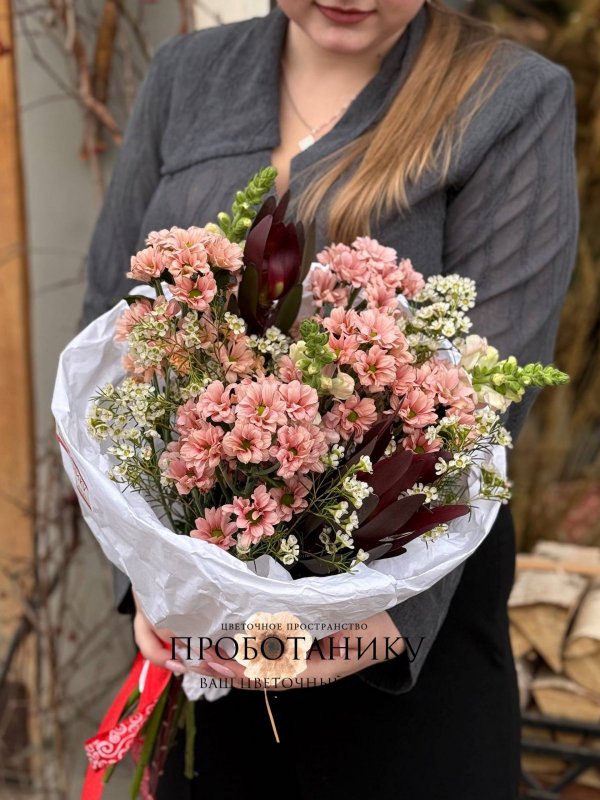 Банч-букет с миксом горных трав и леукадендроном от флористов цветочного пространства "ПРОБОТАНИКУ".