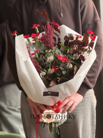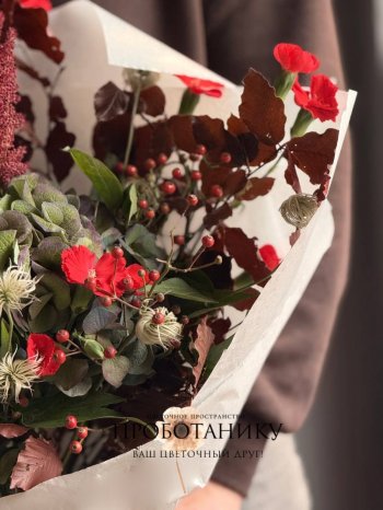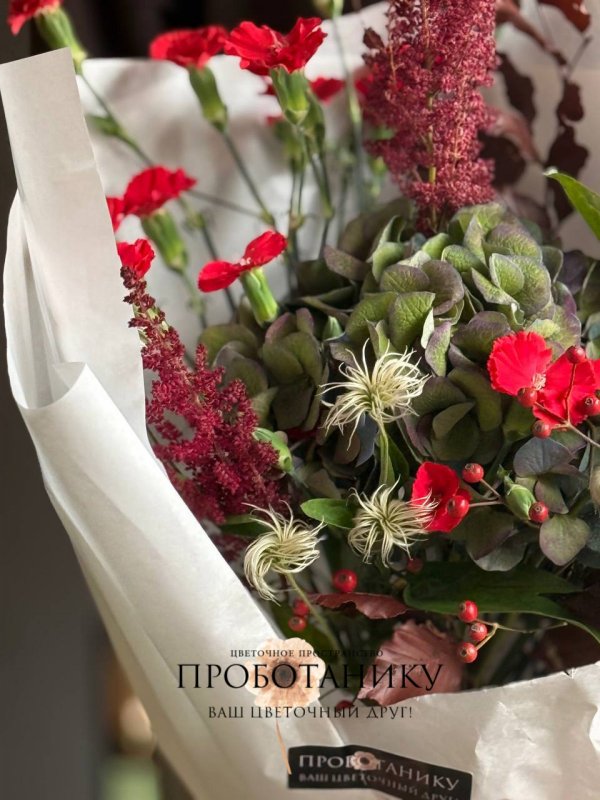 Букет с сезонной гортензией и клематисом от флористов цветочного пространства "ПРОБОТАНИКУ".