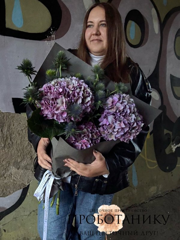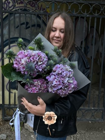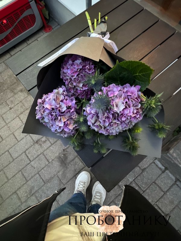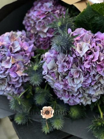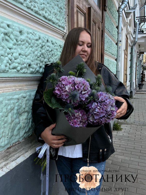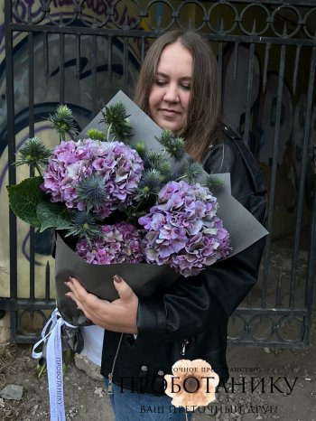 Букет с сезонными гортензиями от флористов цветочного пространства "ПРОБОТАНИКУ".
