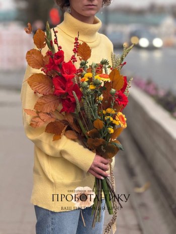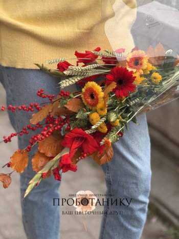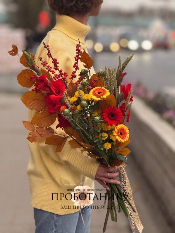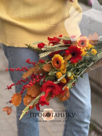 Букет с ярким осенним миксом от флористов цветочного пространства "ПРОБОТАНИКУ".