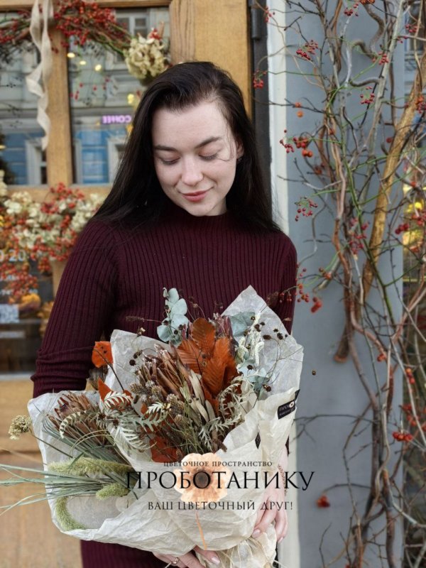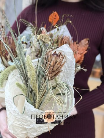 Букет с сухоцветами от флористов цветочного пространства "ПРОБОТАНИКУ".