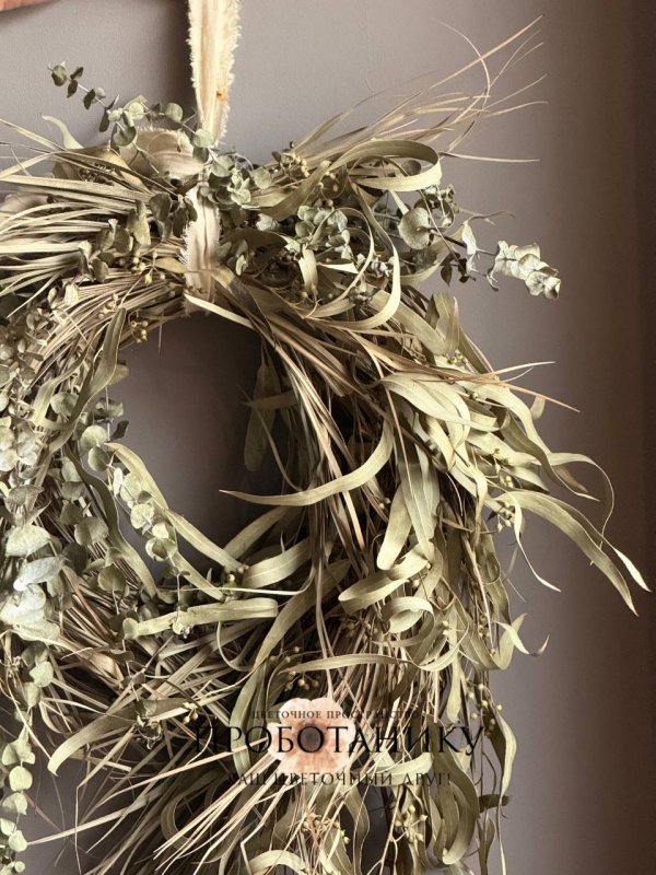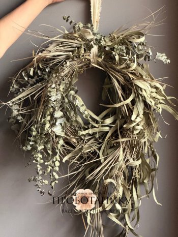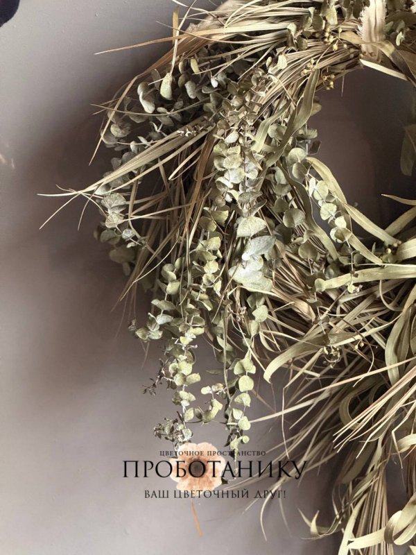 Декоративное украшение с эвкалиптом на дверь от флористов цветочного пространства "ПРОБОТАНИКУ".