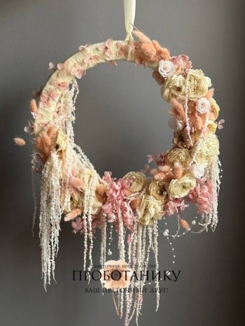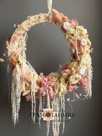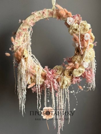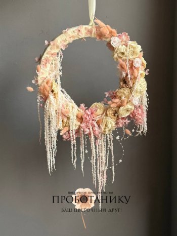 Декоративное украшение с стабилизированными розами на дверь от флористов цветочного пространства "ПРОБОТАНИКУ".