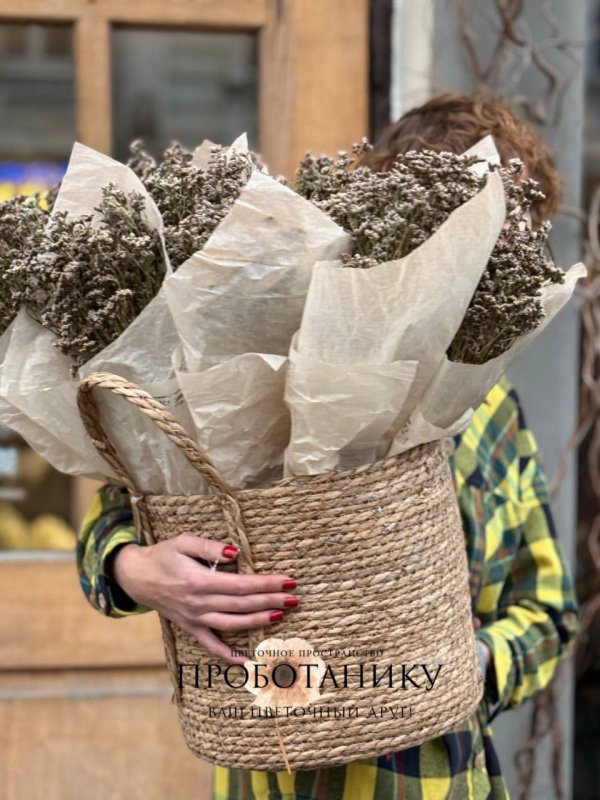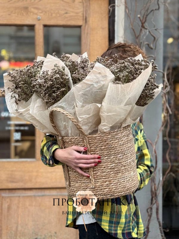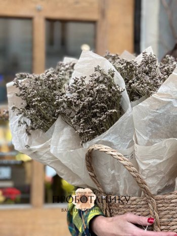 Кулек с сухим лимониумом в крафт от флористов цветочного пространства "ПРОБОТАНИКУ".