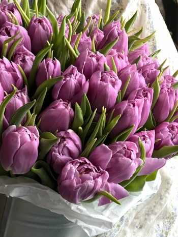 Пионовидные махровые тюльпаны Колумбус, малиновые.