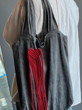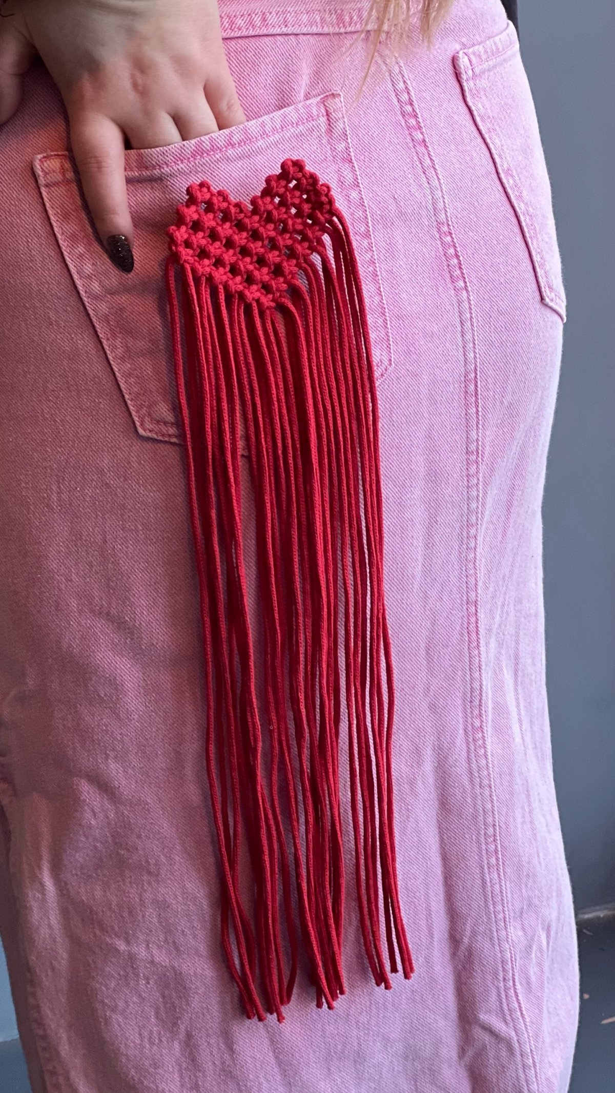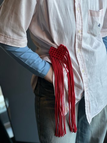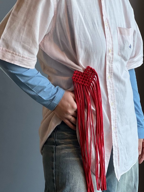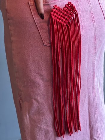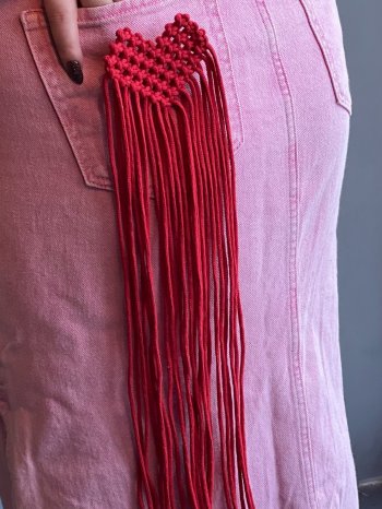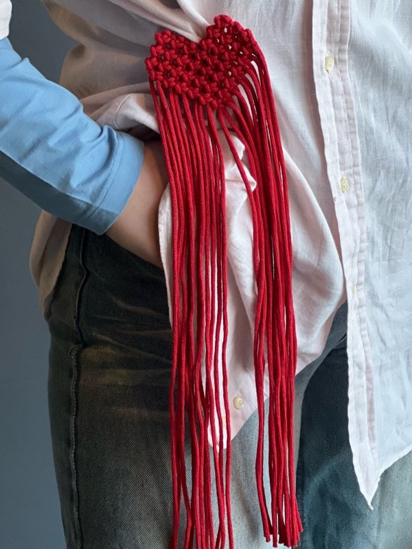 Стильная брошь ручной работы изготовлена из хлопкового шнура в технике макраме.