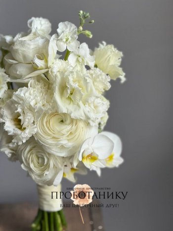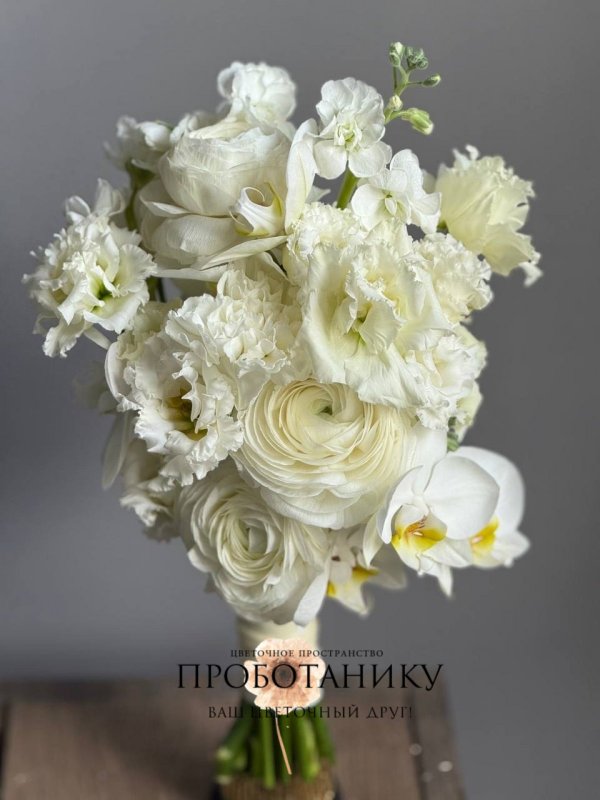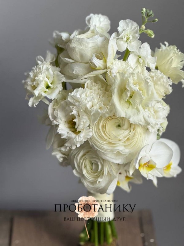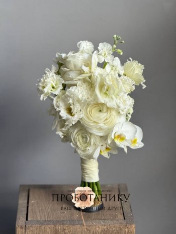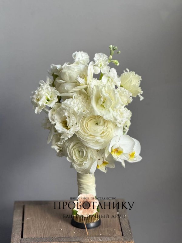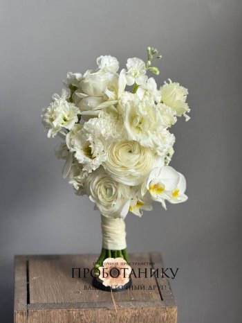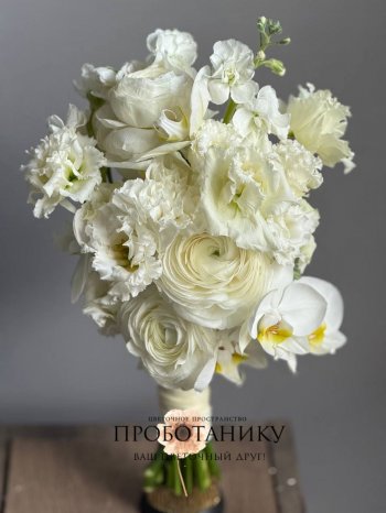 Букет невесты с белыми ранункулюсами от флористов цветочного пространства "ПРОБОТАНИКУ".