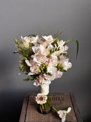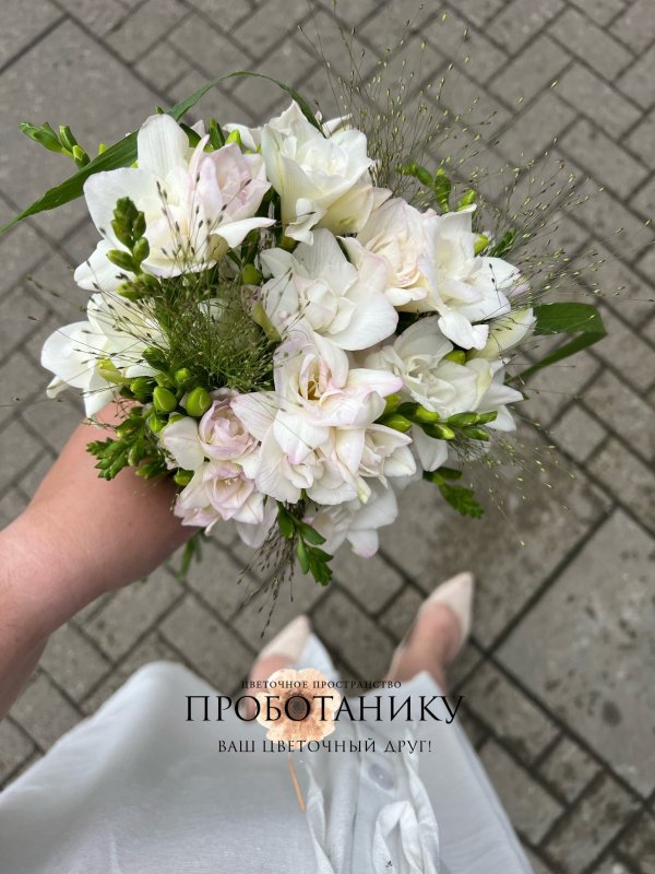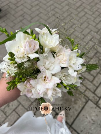 Букет невесты с фрезией от флористов цветочного пространства "ПРОБОТАНИКУ".