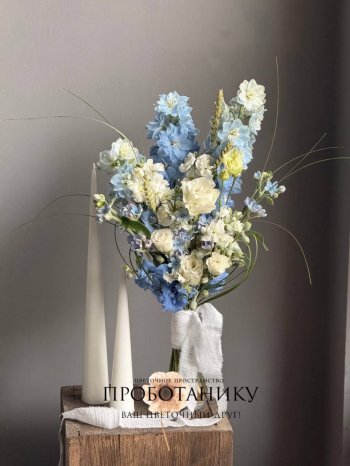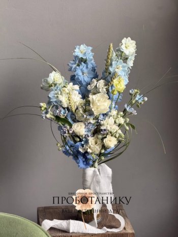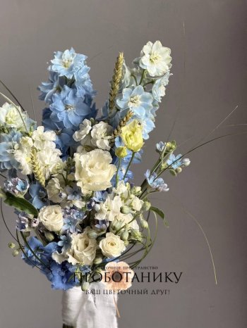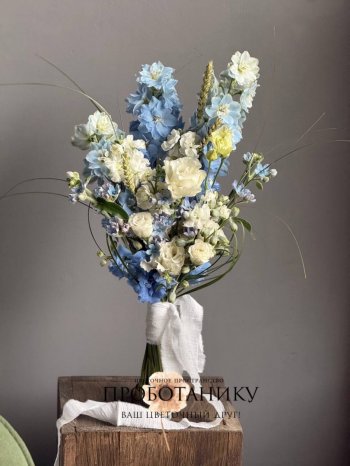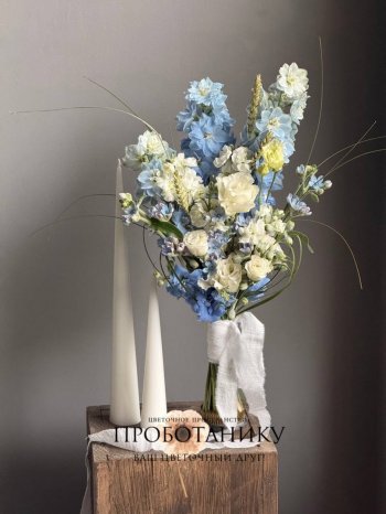 Букет невесты с голубым дельфиниумом от флористов цветочного пространства "ПРОБОТАНИКУ".