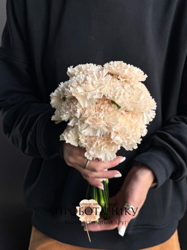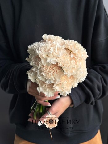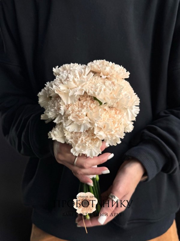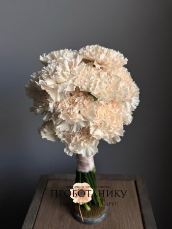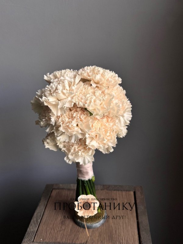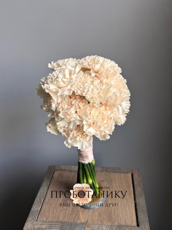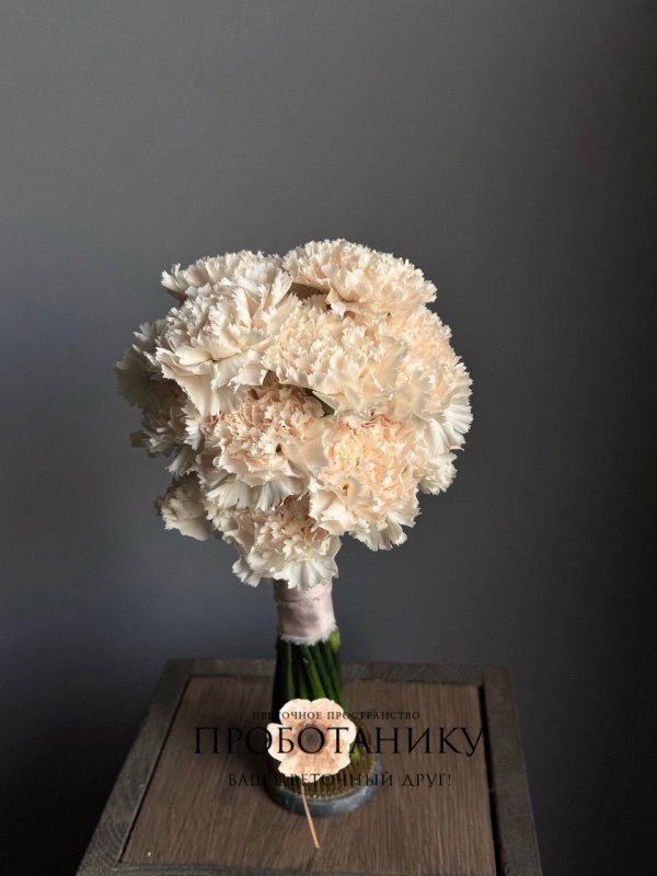 Букет невесты с кремовыми гвоздиками от флористов цветочного пространства "ПРОБОТАНИКУ".