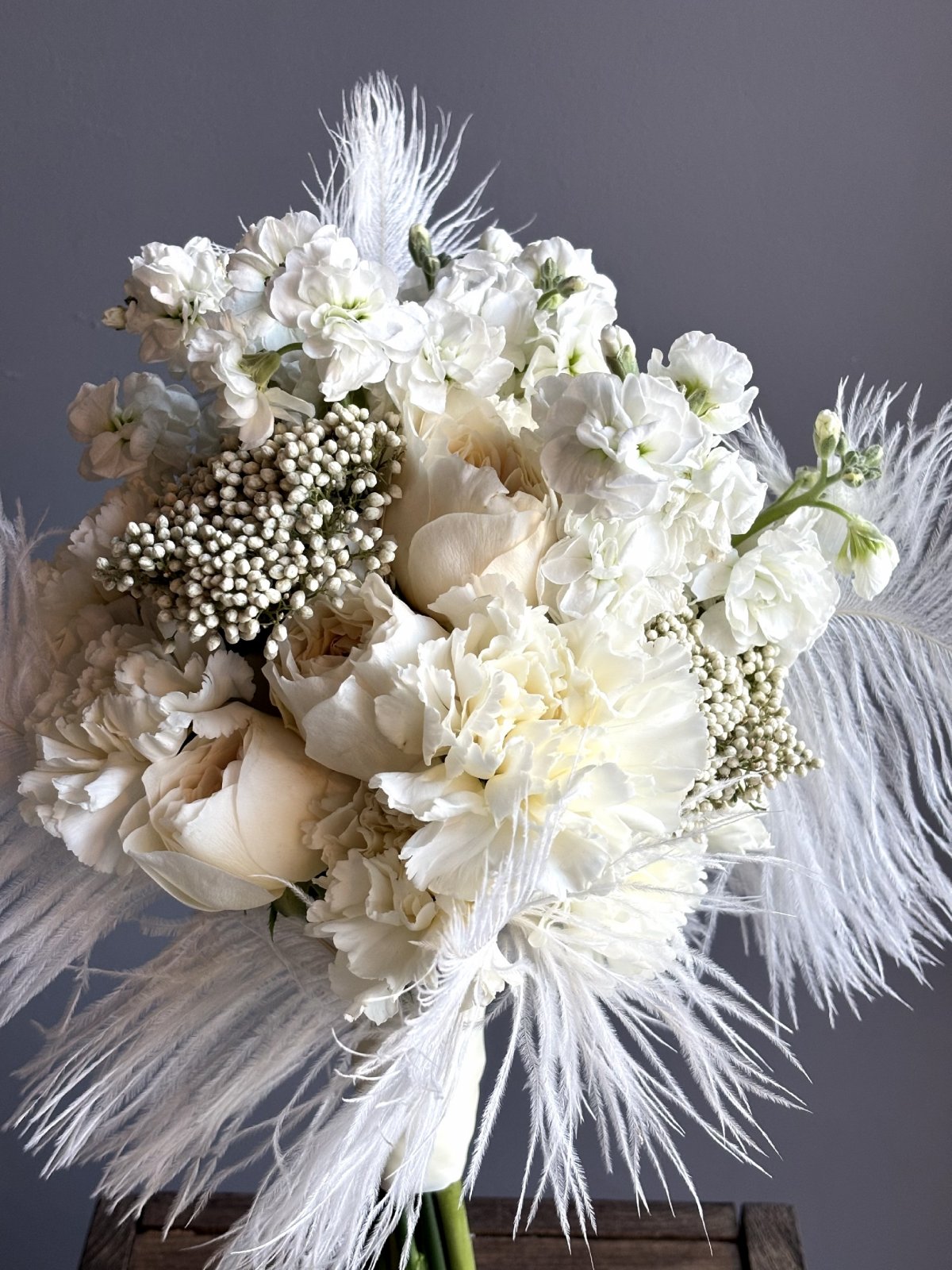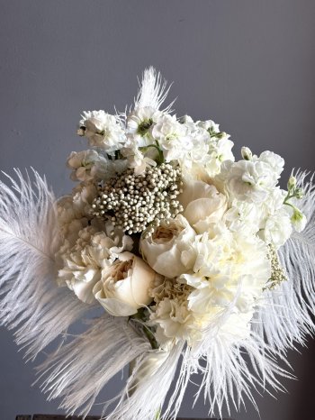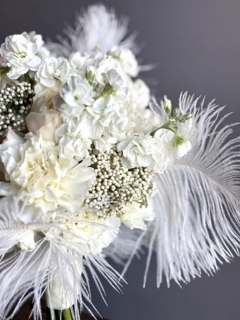 Букет невесты с перьями от флористов цветочного пространства "ПРОБОТАНИКУ".