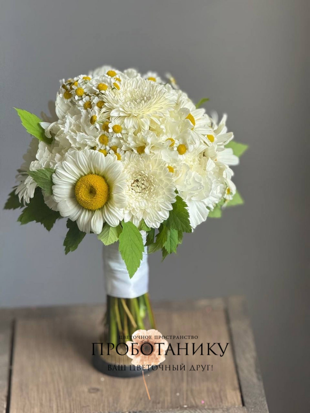 Букет невесты с ромашками от флористов цветочного пространства "ПРОБОТАНИКУ".