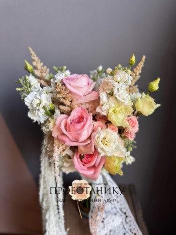 Букет невесты с розами Пинк о'хара от флористов цветочного пространства "ПРОБОТАНИКУ".