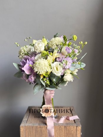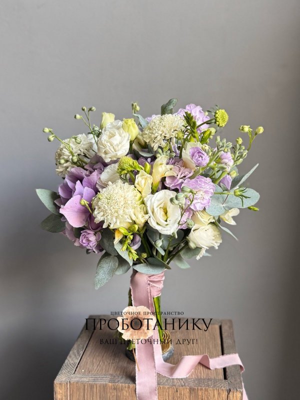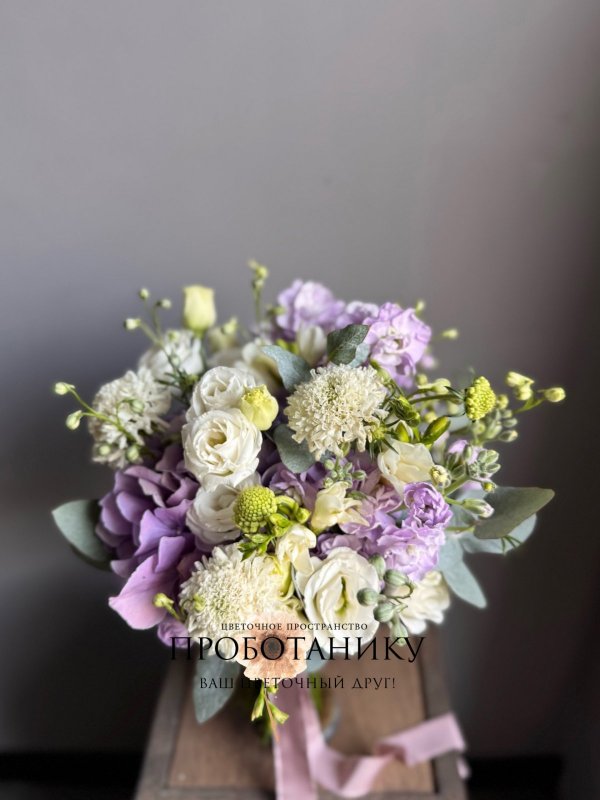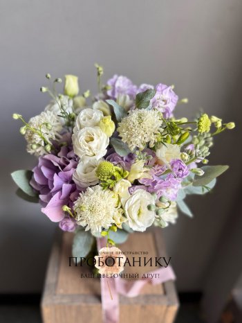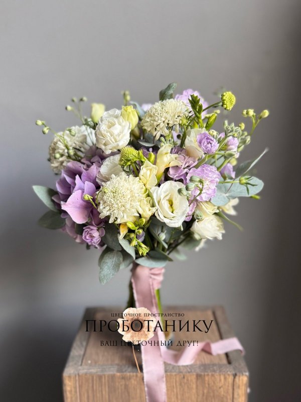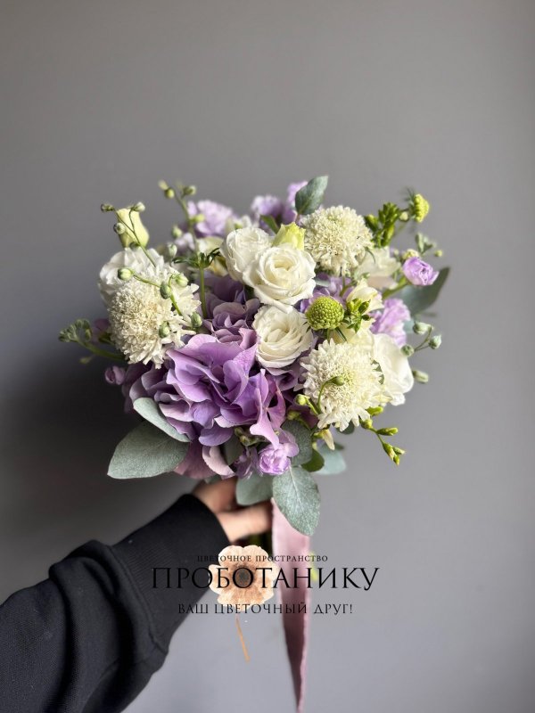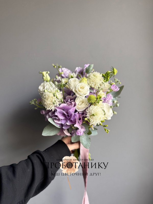 Букет невесты с сиреневой гортензией от флористов цветочного пространства "ПРОБОТАНИКУ".