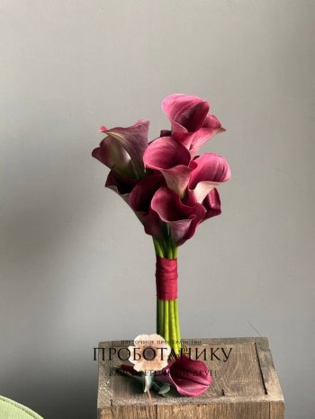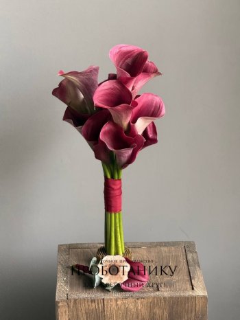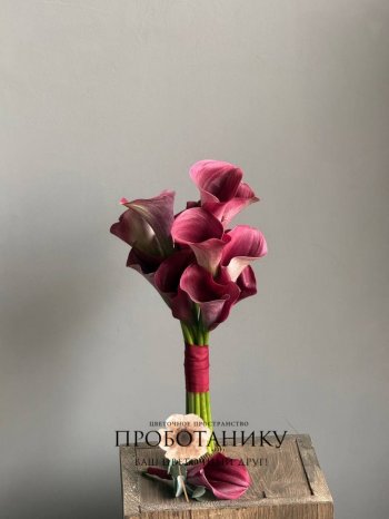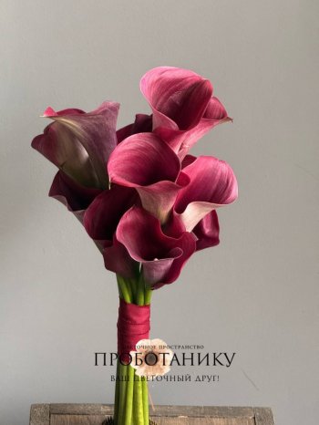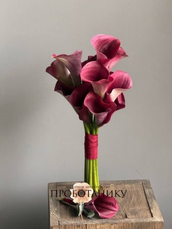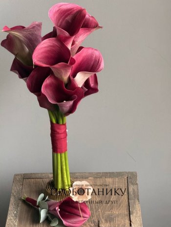 Букет невесты с винными каллами от флористов цветочного пространства "ПРОБОТАНИКУ".