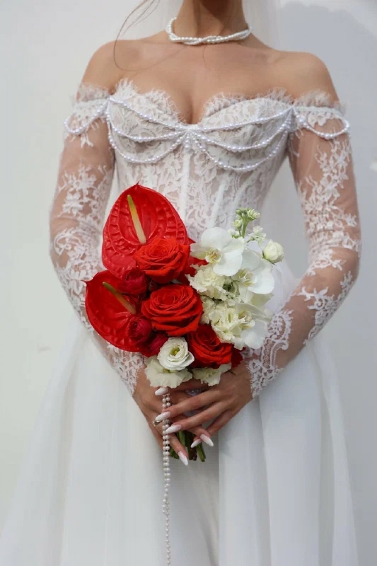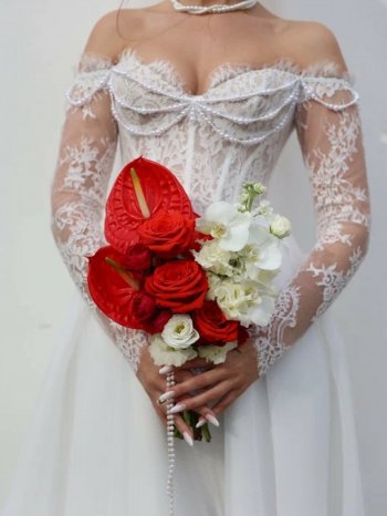 Премиум красно-белый букет невесты от флористов цветочного пространства "ПРОБОТАНИКУ".
