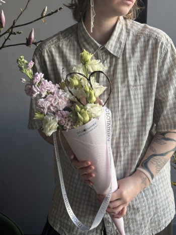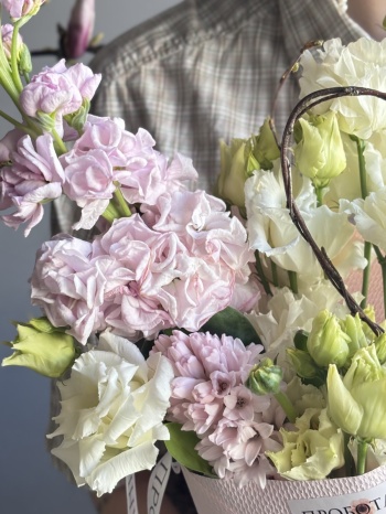Состав букета Гиацинты, Лизиантусы, Маттиола