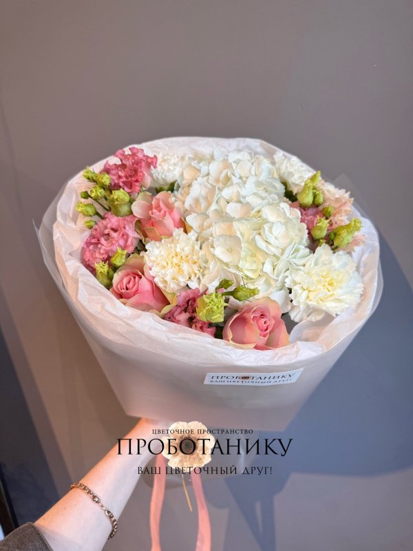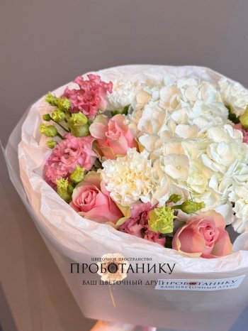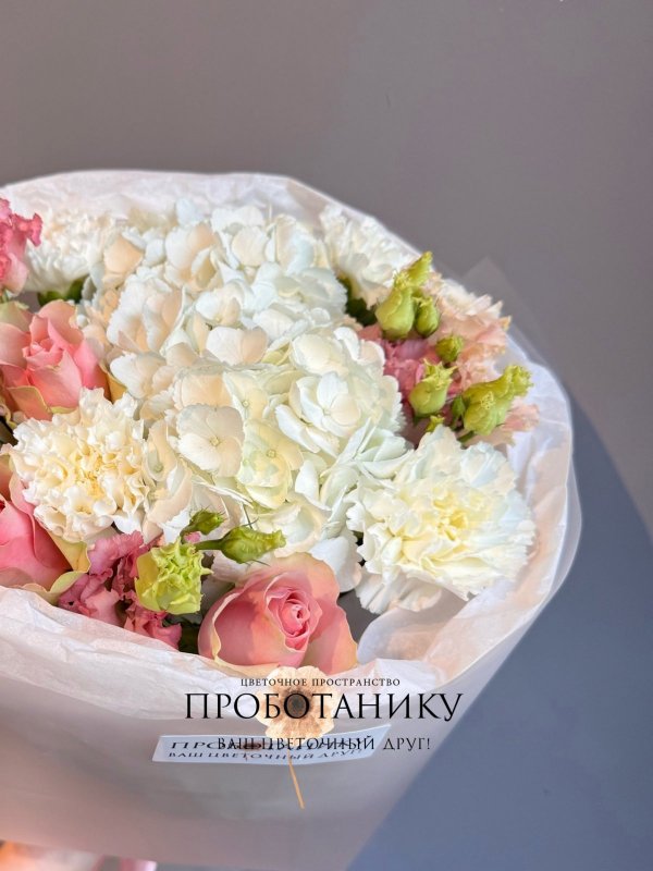 Букет с гортензиями и розами от флористов цветочного пространства "ПРОБОТАНИКУ".