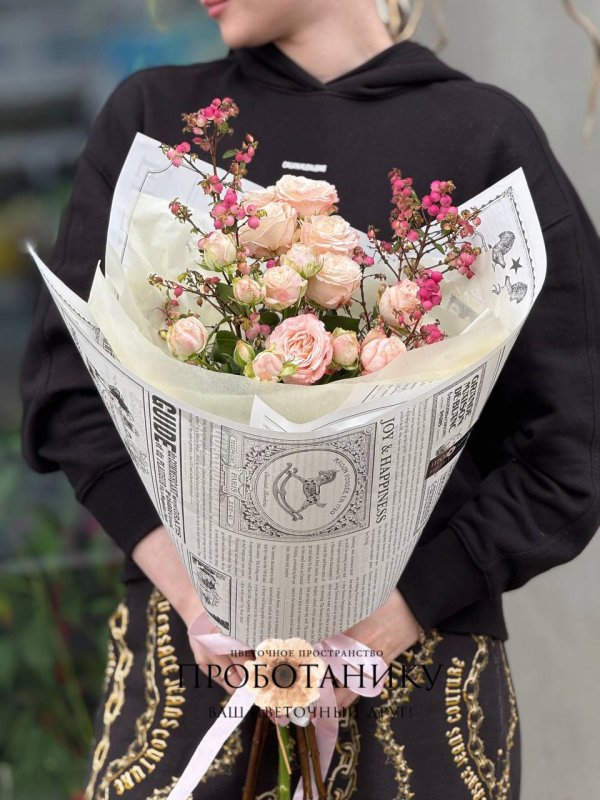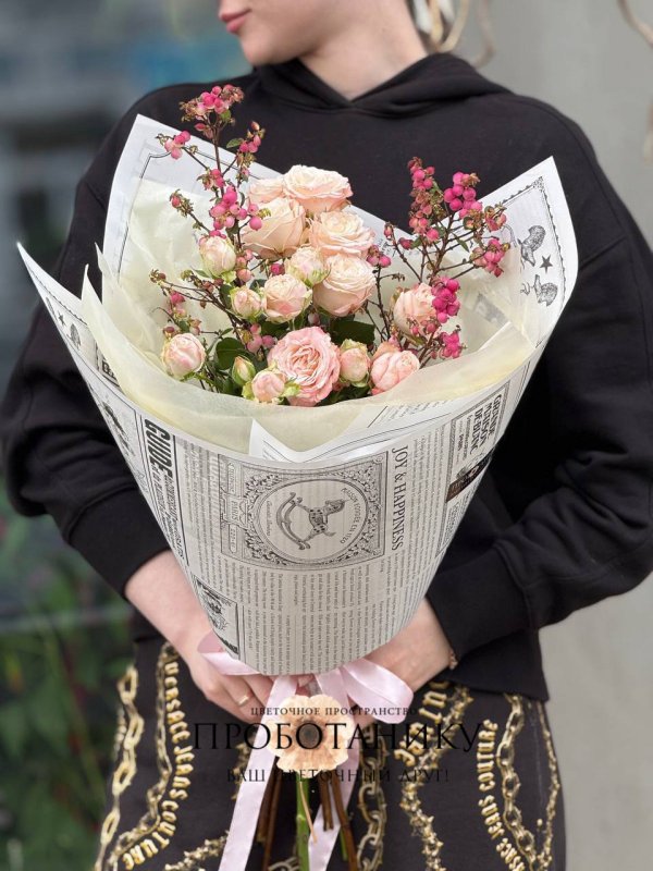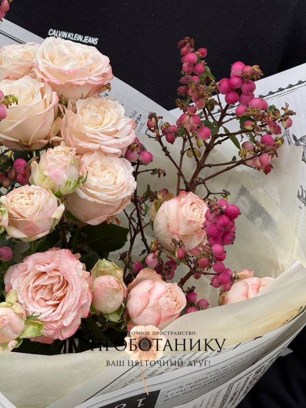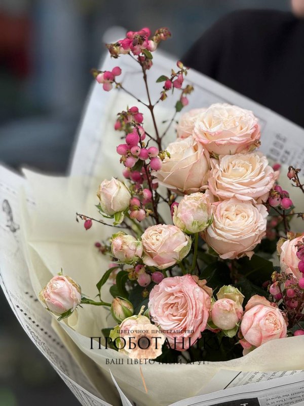 Букет с кустовой розой и ягодами от флористов цветочного пространства "ПРОБОТАНИКУ".