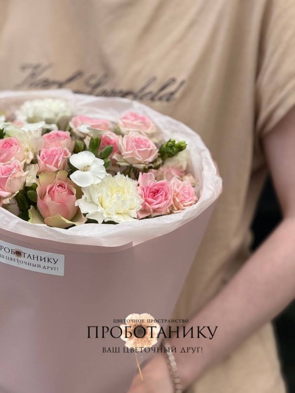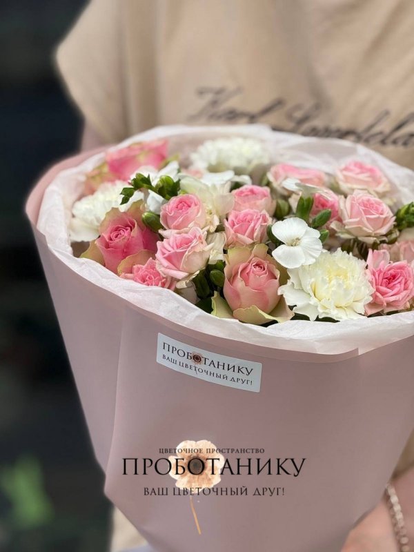 Круглый букет с кустовой розой от флористов цветочного пространства "ПРОБОТАНИКУ".