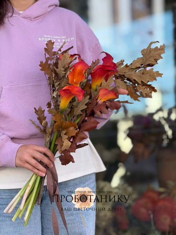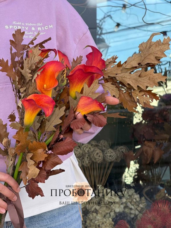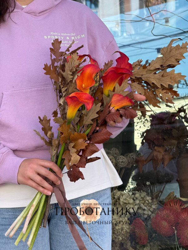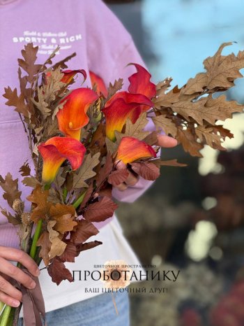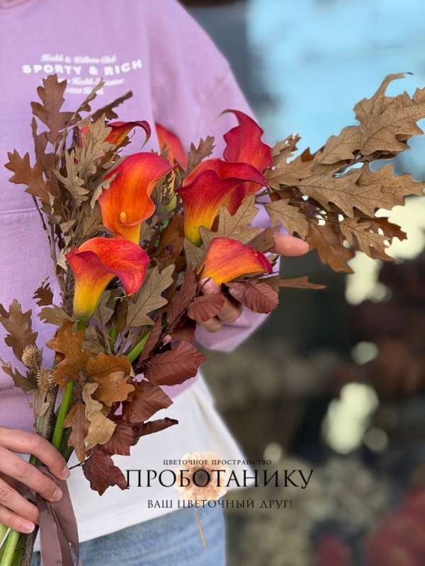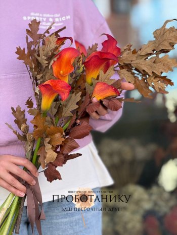 Букет с листьями дуба от флористов цветочного пространства "ПРОБОТАНИКУ".